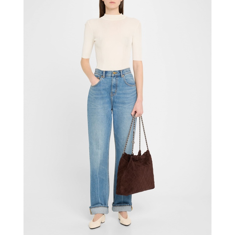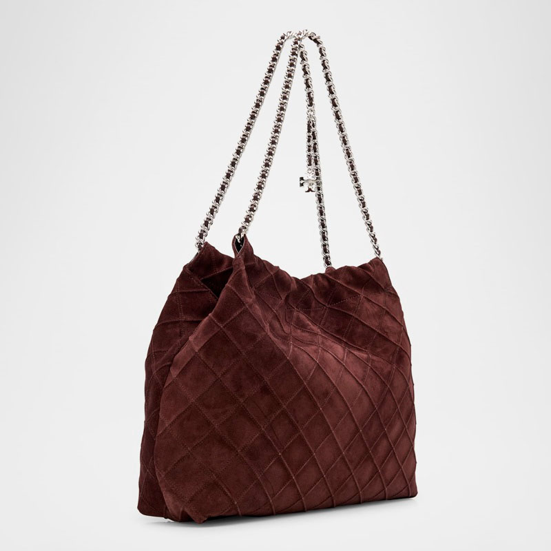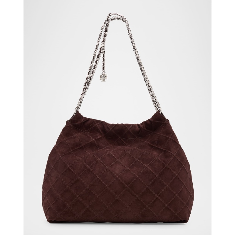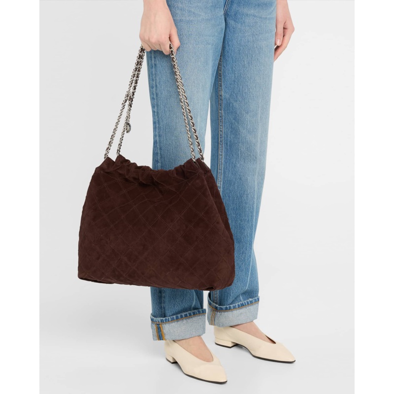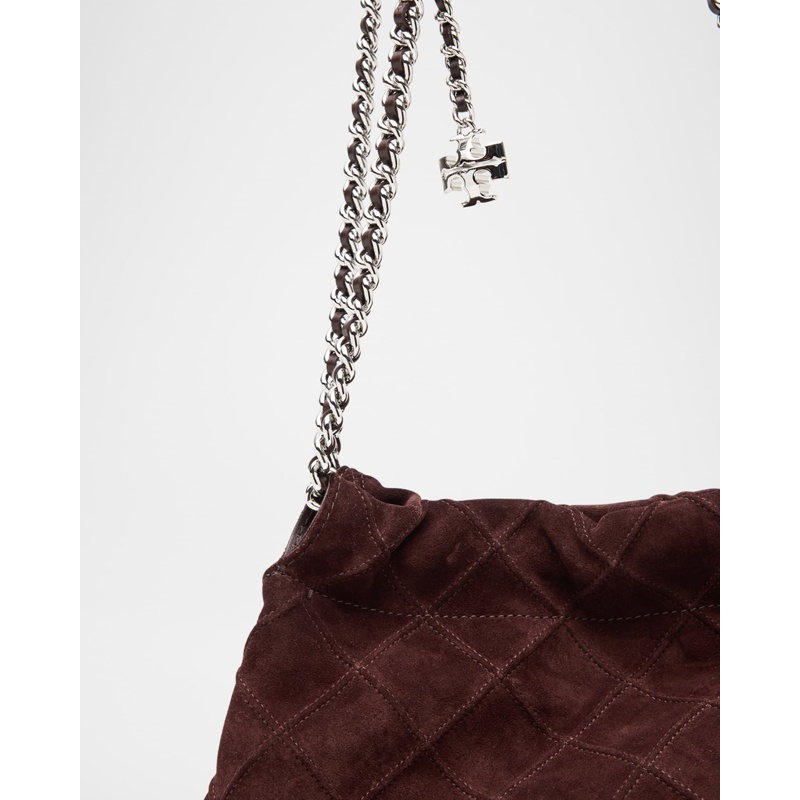A Tory Burch Bolsa Shoulder Fleming Quilted Suede Chain interpreta o estilo Shoulder em design de ombro, com silhueta que abraça o corpo e otimiza mobilidade. Materiais como camurça, com alça de corrente, alça de ombro, detalhes icônicos em matelassê.