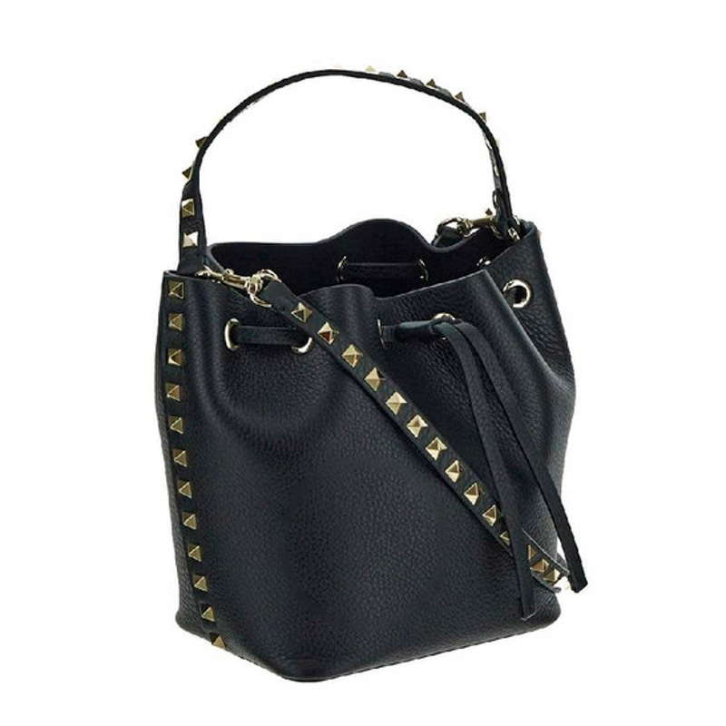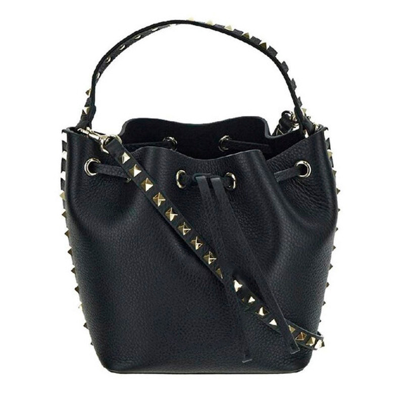 A Valentino Garavani Bolsa Bucket Drawstring Rockstud interpreta o estilo Bucket em design de mão/ombro, com copo cilíndrico com fecho ajustável. Com alça de mão, alça de ombro.