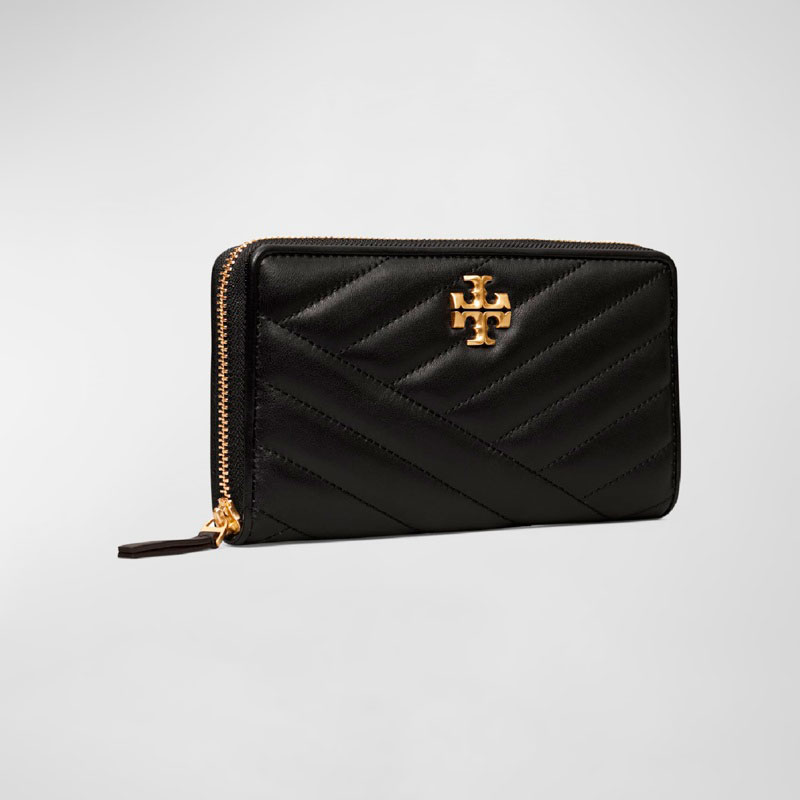 A Tory Burch Bolsa Wallet Kira Chevron-Quilt Zip Continental interpreta o estilo Wallet em design de carteira, com formato plano pensado para organização. Com sem alça ou pulseira de mão, detalhes icônicos em chevron.