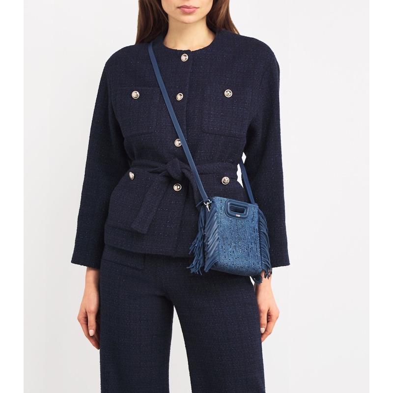 Maje eleva o cotidiano com esta handle de apelo contemporâneo. A Bolsa Handle Denim Rhinestone 'M' combina linhas precisas e proporções equilibradas para um efeito de luxo discreto.