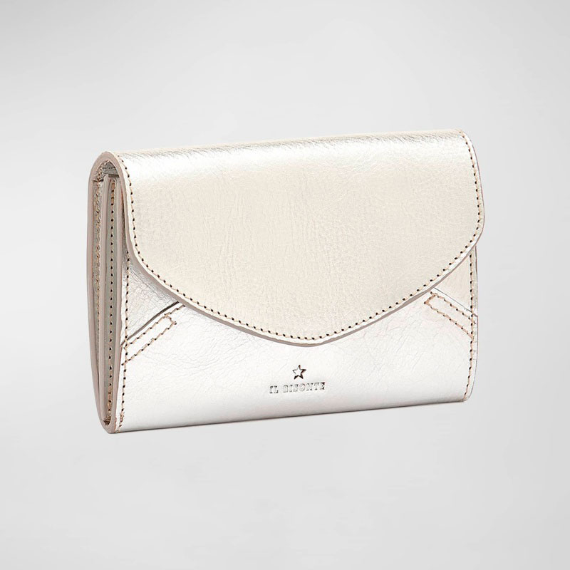 A Il Bisonte Bolsa Wallet Esperia Medium Metallic interpreta o estilo Wallet em design de carteira, com formato plano e organizado. Com sem alça ou pulseira de mão.