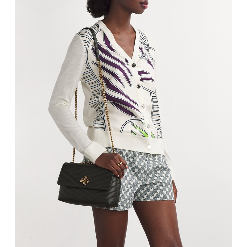 No styling, A Bolsa Shoulder Chevron Kira vai do denim à seda sem esforço — um curinga Tory Burch para hoje e sempre.