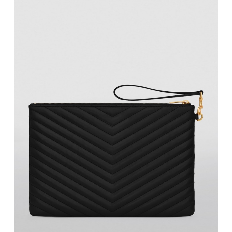 YSL - Yves Saint Laurent apresenta A Bolsa Clutch Monogram Saint Laurent Matelassé Tablet: clutch de construção primorosa em materiais de alto padrão, acabamento matelassê/acolchoado, com monograma...