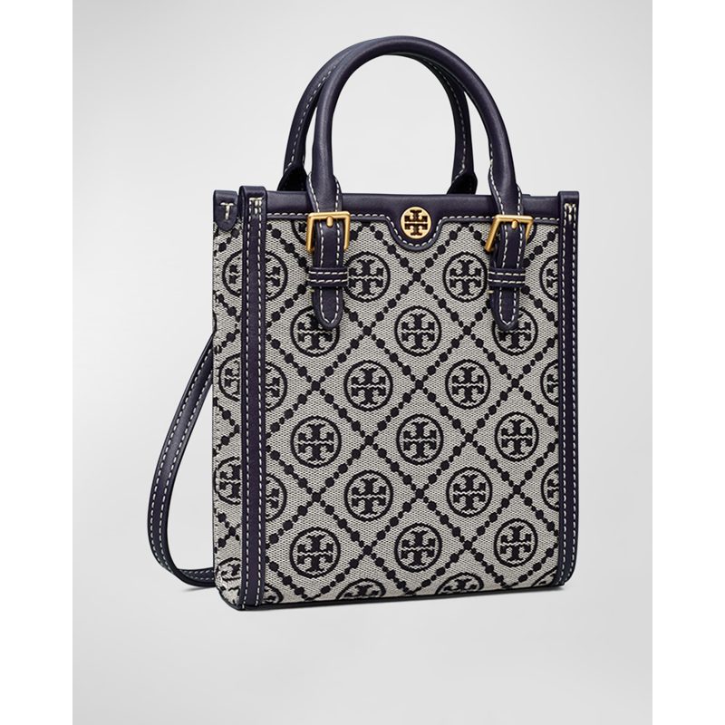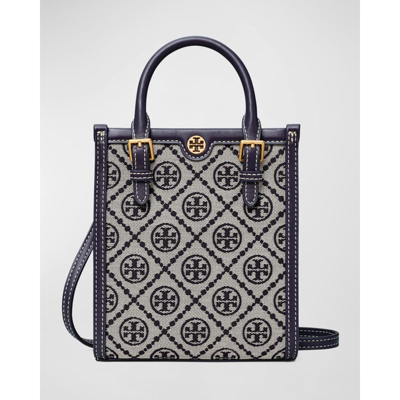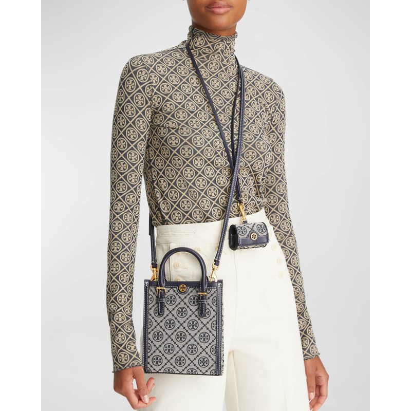 A Tory Burch Bolsa Crossbody Mini T Monogram Jacquard North-South interpreta o estilo Crossbody em design de tiracolo, com corpo leve de vocação urbana. Materiais como jacquard, com alça tiracolo ajustável, detalhes icônicos em monograma.