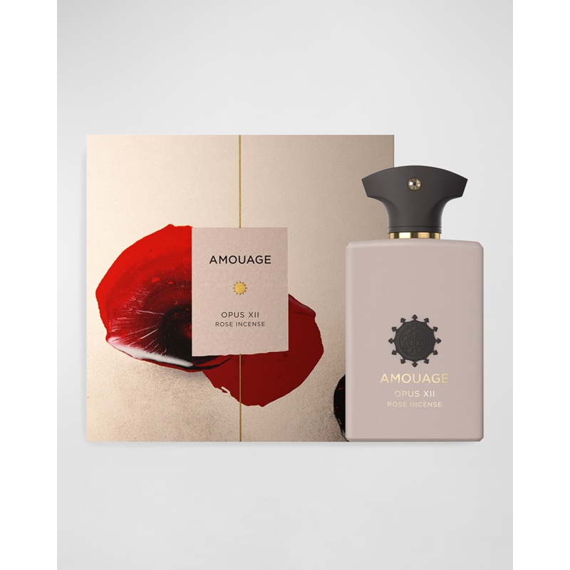 No coração, a rosa damascena, o resinoide de olíbano e o suederal formam um buquê floral rico, que adiciona uma camada de profundidade e calor à composição. A base de mirra, baunilha, cedro e sândalo confere uma finalização aveludada e envolvente, que perdura na pele com uma presença cativante. Opus XII reflete a habilidade da Amouage em criar fragrâncias que são ao mesmo tempo poéticas e impactantes.