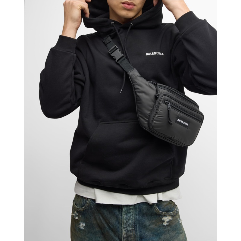 A Balenciaga Bolsa Necessaire Explorer Nylon Belt interpreta o estilo Necessaire em design de mão, com organização de pequenos itens. Materiais como nylon, com sem alça.