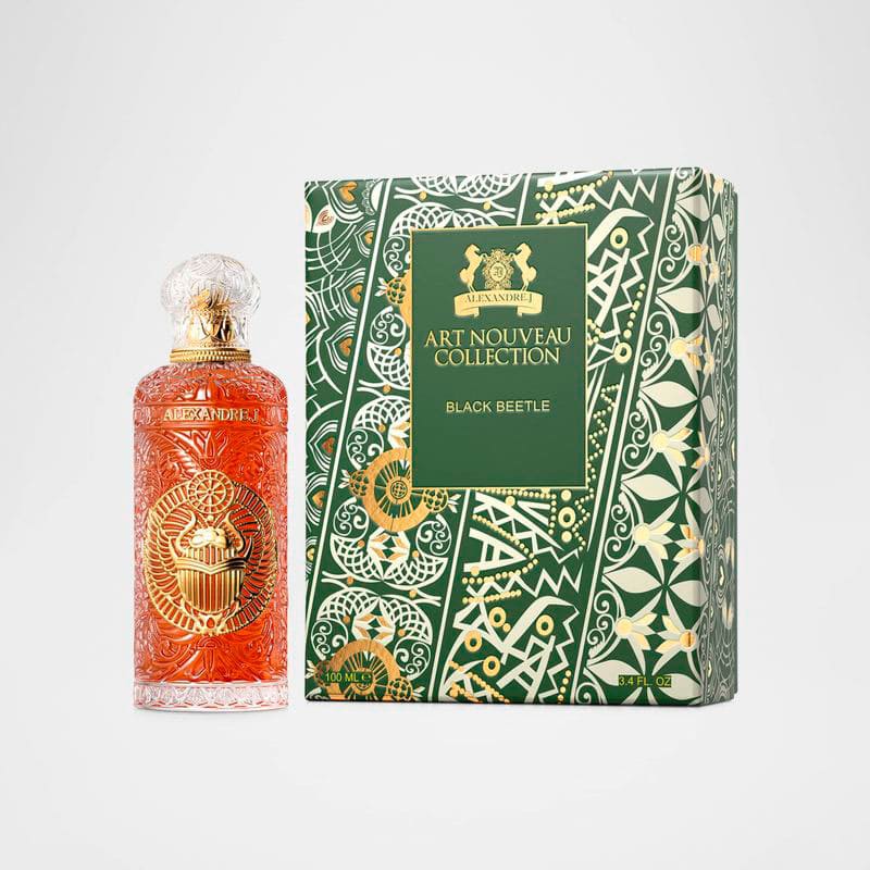 No coração, a noz-moscada e a pimenta adicionam uma camada de calor especiado, que intensifica a riqueza da composição. A base de patchouli e madeira de almíscar confere uma finalização terrosa e envolvente, que perdura na pele com uma presença magnética. Black Beetle reflete a visão de Alexandre J de combinar embalagens opulentas com fragrâncias que evocam a arte e a arquitetura, criando uma experiência olfativa única.