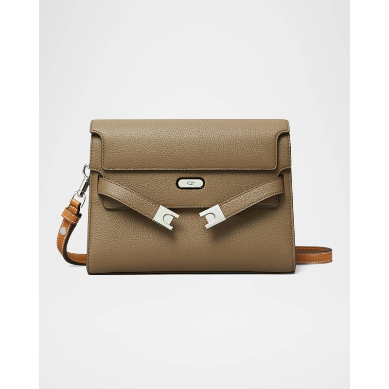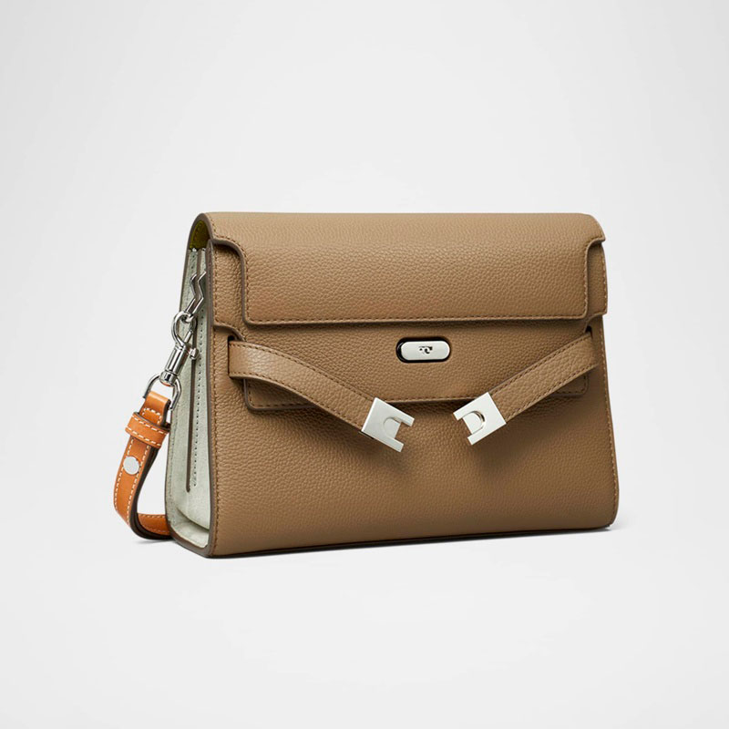 A Tory Burch Bolsa Shoulder Lee Radziwill Pebbled interpreta o estilo Shoulder em design de ombro, com silhueta que abraça o corpo e otimiza mobilidade. Materiais como couro granulado, com alça de ombro.