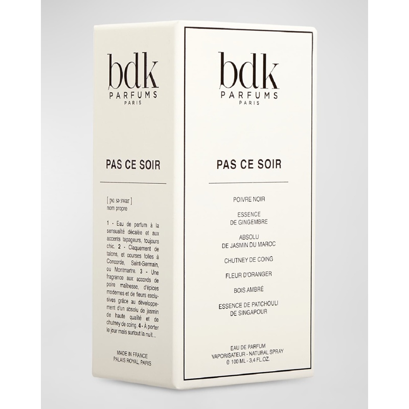 BDK Parfums Pas ce Soir 100ml Eau De Parfum apresenta sensibilidade parisiense e perfis contemporâneos. Combina matérias-primas selecionadas e construção de alto padrão.