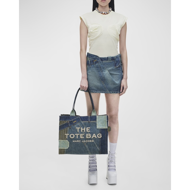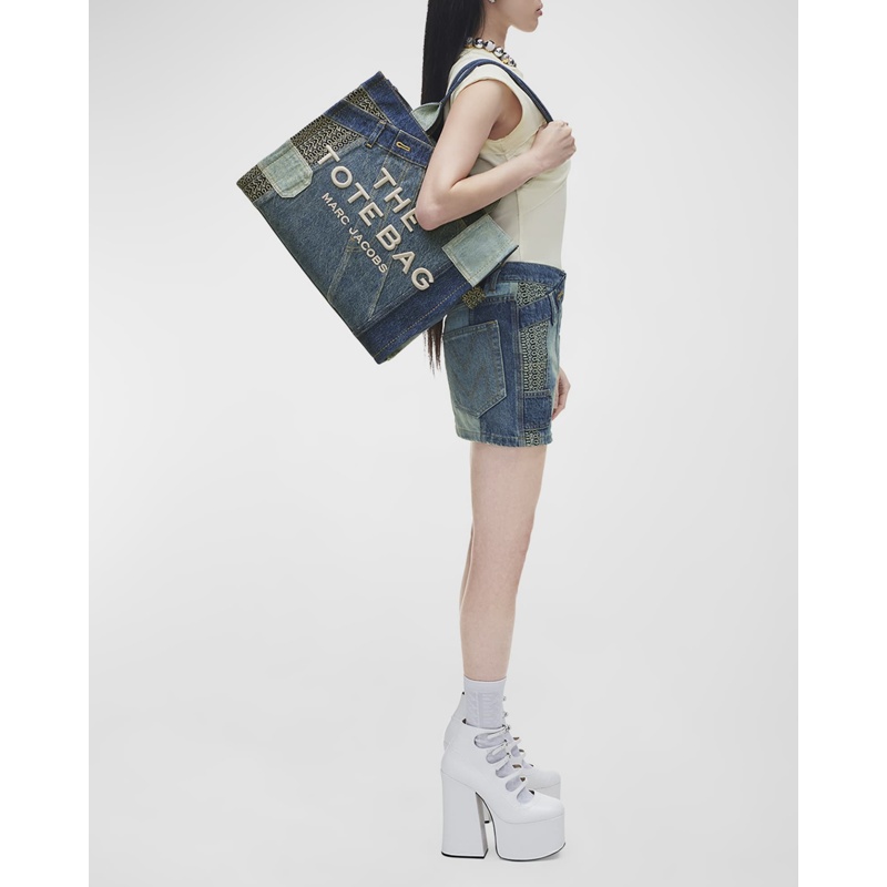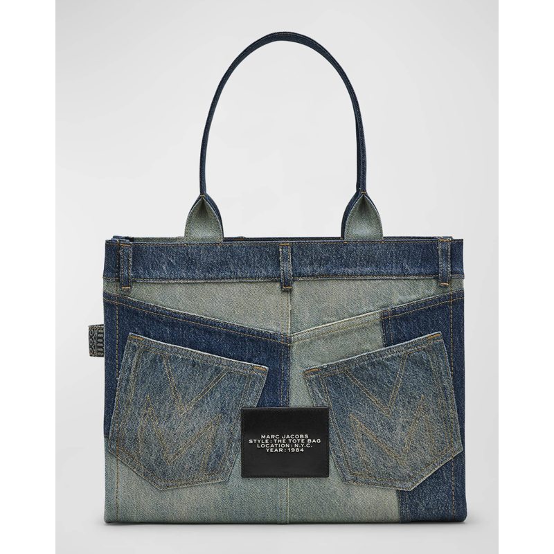 A Marc Jacobs Bolsa Shopper The Deconstructed Denim Large interpreta o estilo Shopper em design de ombro, com volume generoso e linhas limpas. Com alça de ombro.