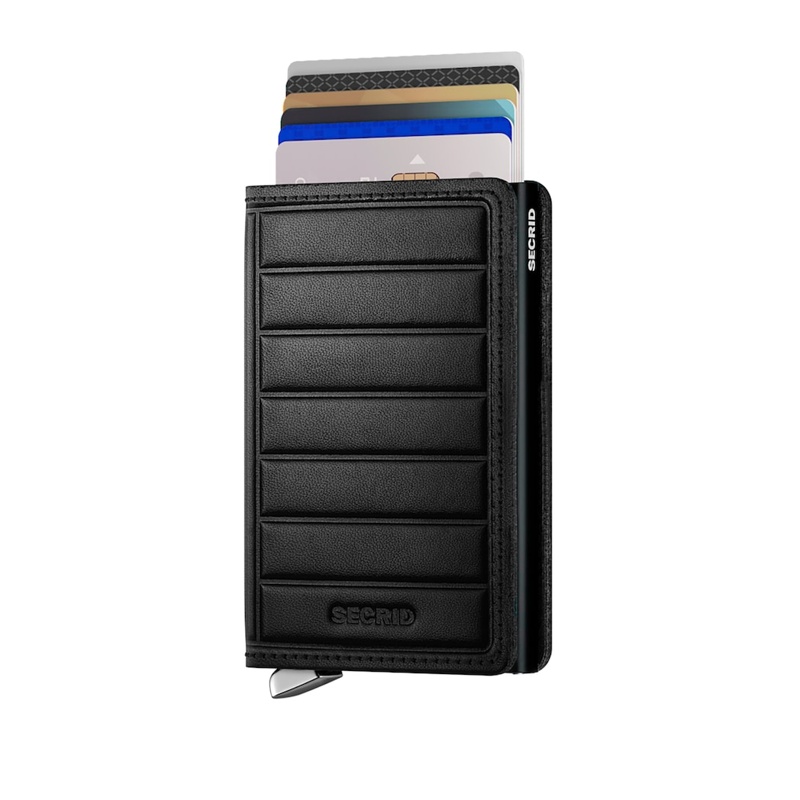 Assinada por Secrid, A Bolsa Wallet Emboss Lines Slimwallet é uma wallet em materiais de alto padrão, marcada por ferragens metalizadas de alto padrão.