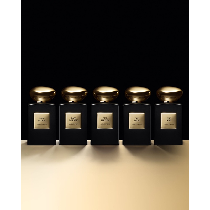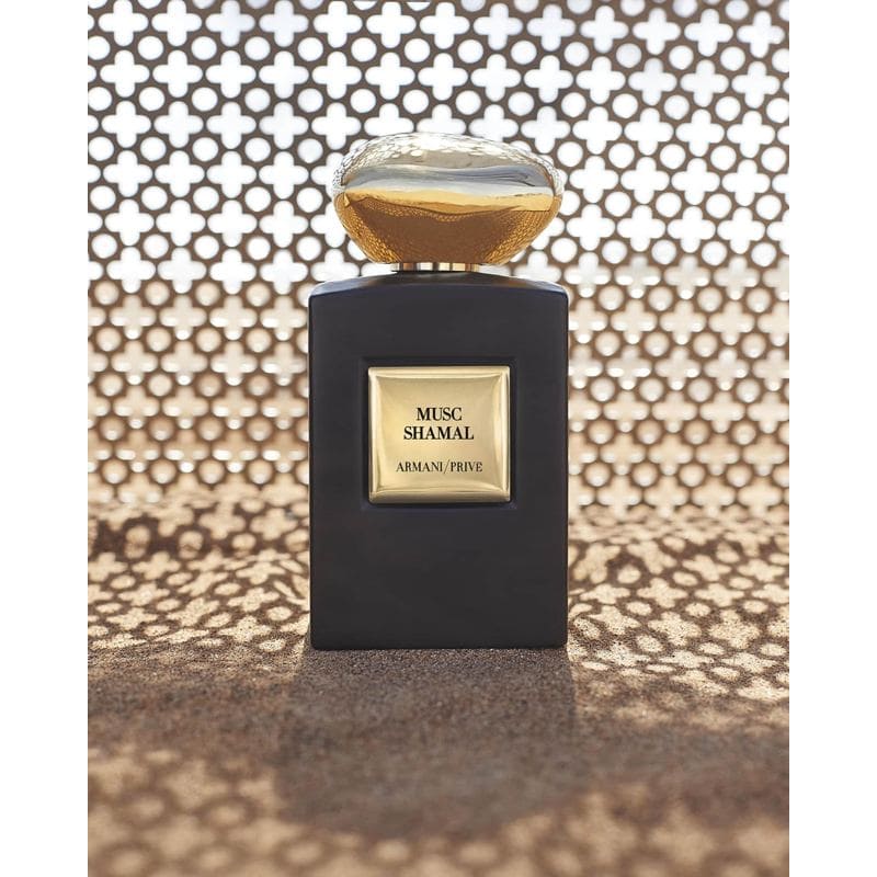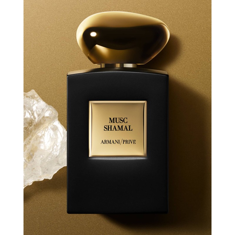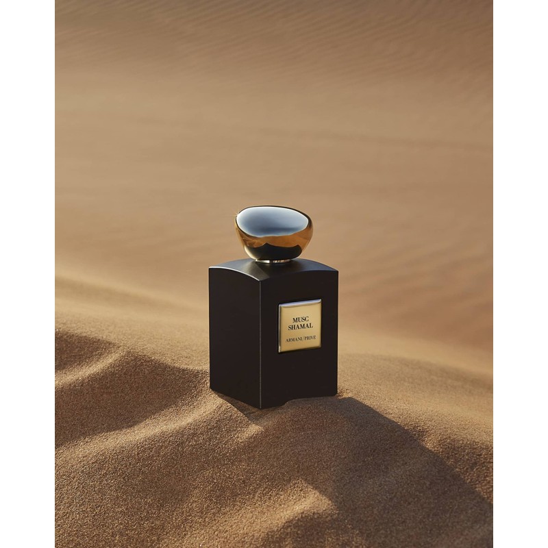 No coração, a rosa turca floresce com uma sensualidade aveludada, que adiciona uma camada de profundidade floral à composição. A base almiscarada confere uma finalização persistente e envolvente, que perdura na pele com uma aura magnética. Musc Shamal reflete a habilidade da Armani Beauty em criar fragrâncias que evocam as narrativas de *As Mil e Uma Noites* com uma sofisticação artesanal.