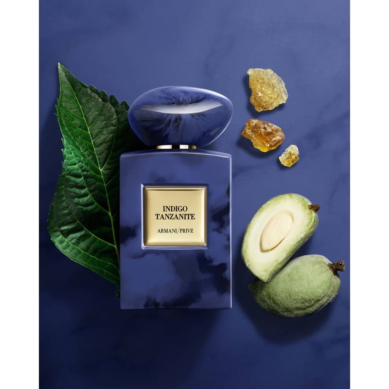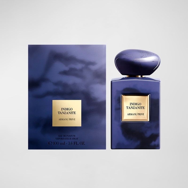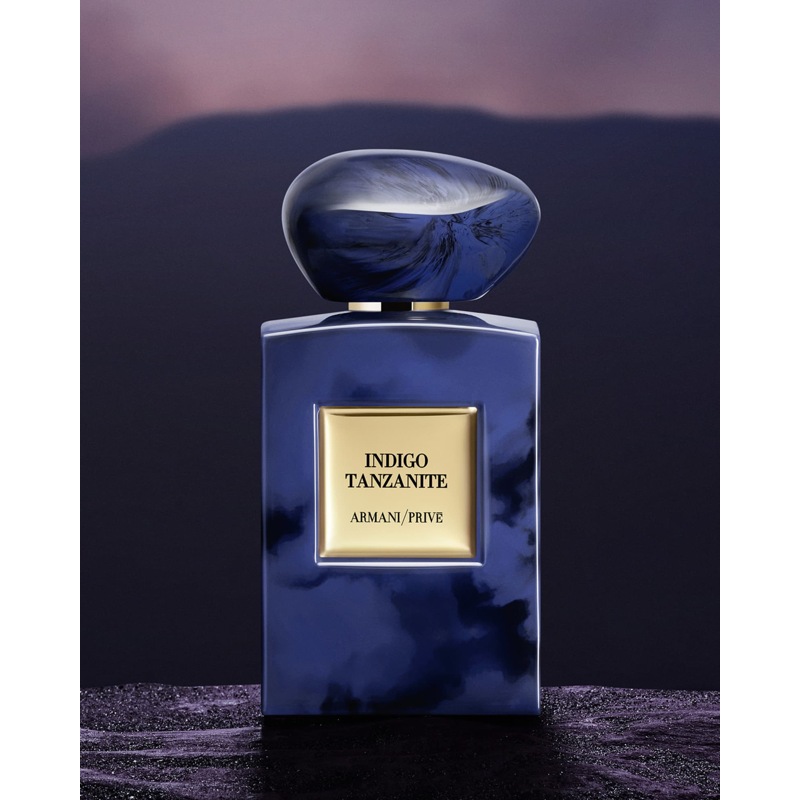 No coração, os acordes de leite e heliotrópio adicionam uma camada de suavidade gourmand, que intensifica a riqueza da composição. A base de patchouli, notas balsâmicas e âmbar confere uma finalização amadeirada e envolvente, que perdura na pele com uma aura magnética. Indigo Tanzanite reflete a habilidade da Armani Beauty em criar fragrâncias que capturam a mística da natureza com uma sofisticação artesanal.