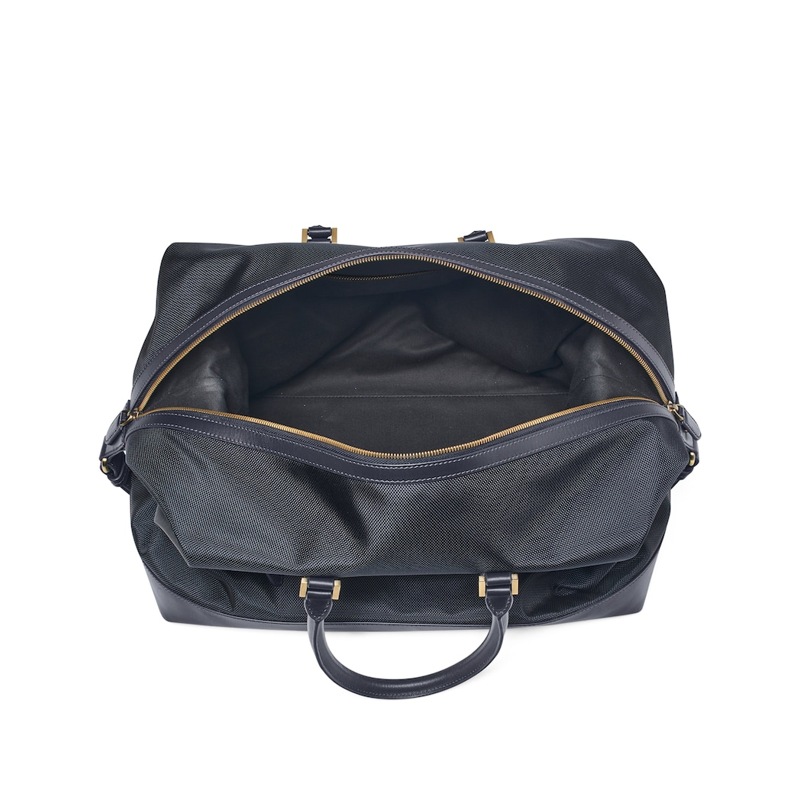 Feita em nylon premium, com acabamento liso, a peça destaca ferragens polidas e herança artesanal inglesa. O design privilegia praticidade sem perder sofisticação, com atenção aos acabamentos e à ergonomia no uso.