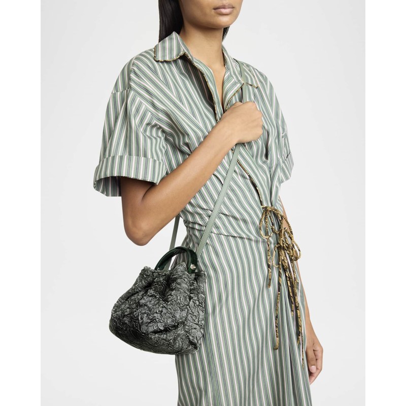A Dries Van Noten Bolsa Handle Crisp Crinkled interpreta o estilo Handle em design de mão, com estrutura gráfica com presença, feminina e firme. Com alça de mão.