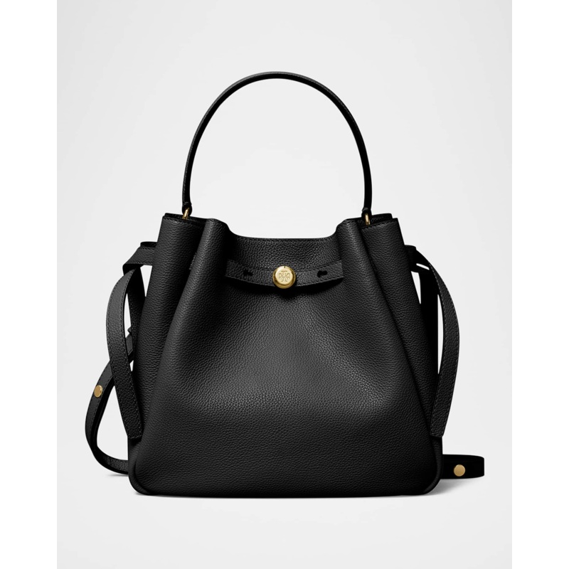 A Tory Burch Bolsa Bucket Romy interpreta o estilo Bucket em design de mão/ombro, com copo cilíndrico com fecho ajustável. Com alça de mão, alça de ombro.