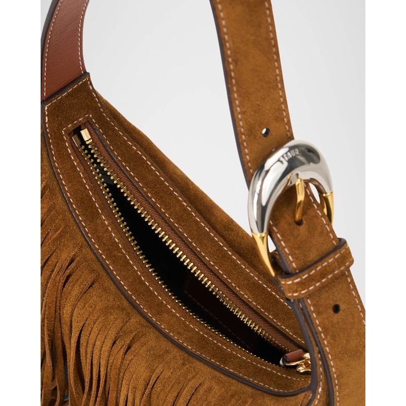 A Staud Bolsa Shoulder Owen Fringe Buckle Suede interpreta o estilo Shoulder em design de ombro, com silhueta que abraça o corpo e otimiza mobilidade. Materiais como camurça, com alça de ombro.