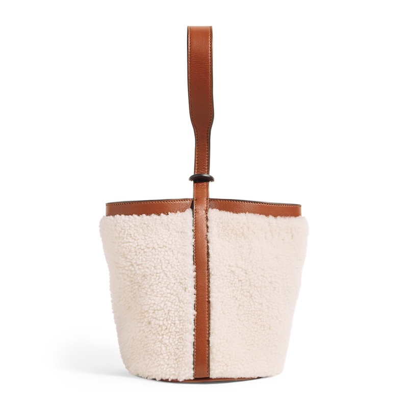 No styling, A Bolsa Bucket Shearling- vai do denim à seda sem esforço — um curinga Yves Salomon para hoje e sempre.