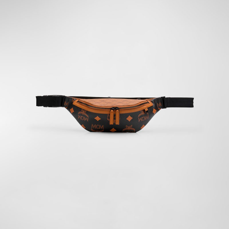 A MCM Bolsa Necessaire Fursten Monogram Mix Belt interpreta o estilo Necessaire em design de mão, com organização de pequenos itens. Com sem alça, detalhes icônicos em monograma.