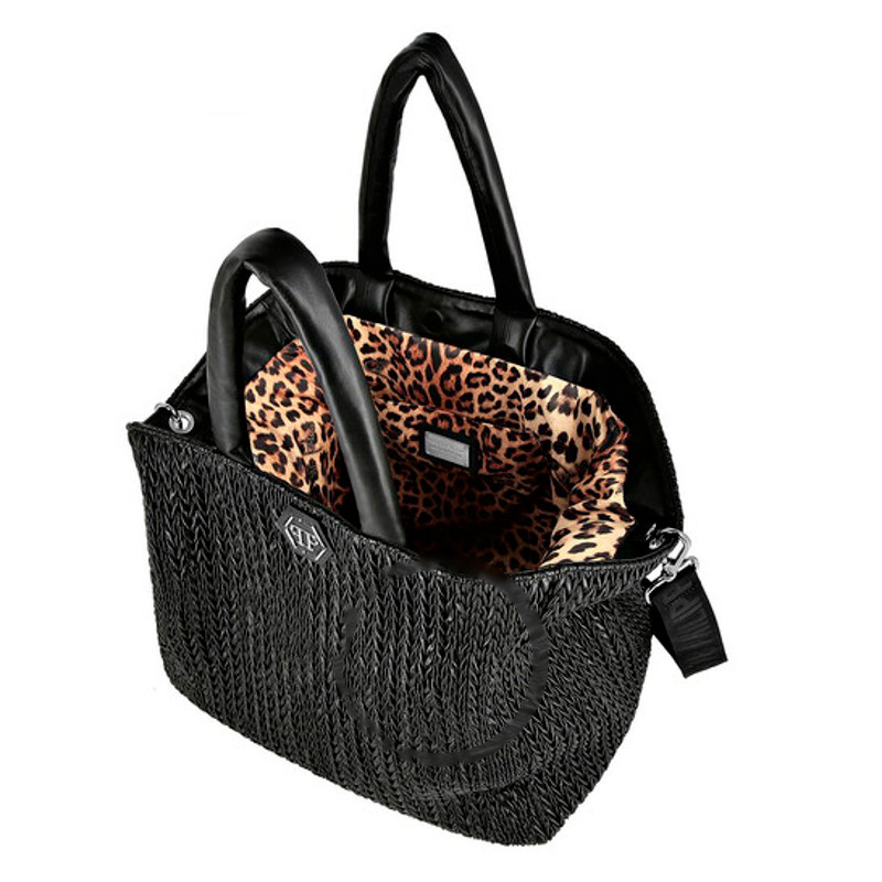 A Philipp Plein Bolsa Handle Big Hobo Iconic Plein interpreta o estilo Handle em design de mão, com estrutura gráfica com presença, feminina e firme. Com alça de mão.