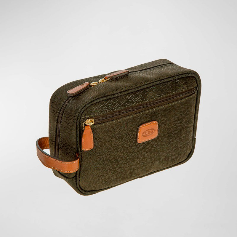 A Bric's Bolsa Necessaire Life Traditional Shave Case interpreta o estilo Necessaire em design de mão, com organização de pequenos itens. Com sem alça.
