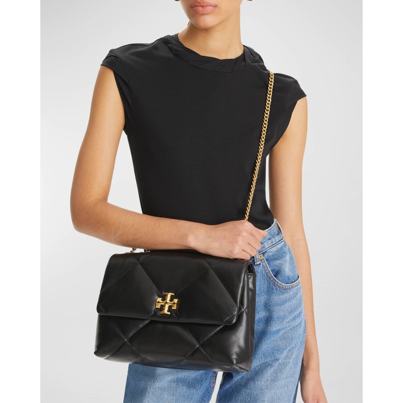 A Tory Burch Bolsa Shoulder Kira Diamond Quilted Convertible interpreta o estilo Shoulder em design de ombro, com silhueta que abraça o corpo e otimiza mobilidade. Com alça de ombro, detalhes icônicos em matelassê.