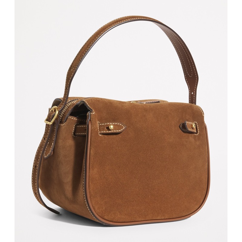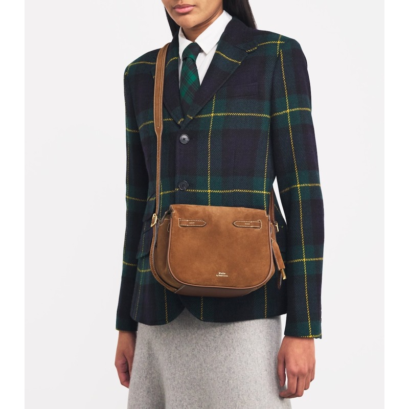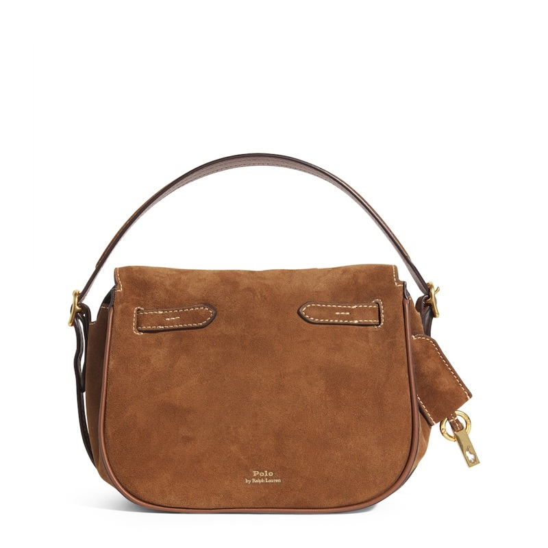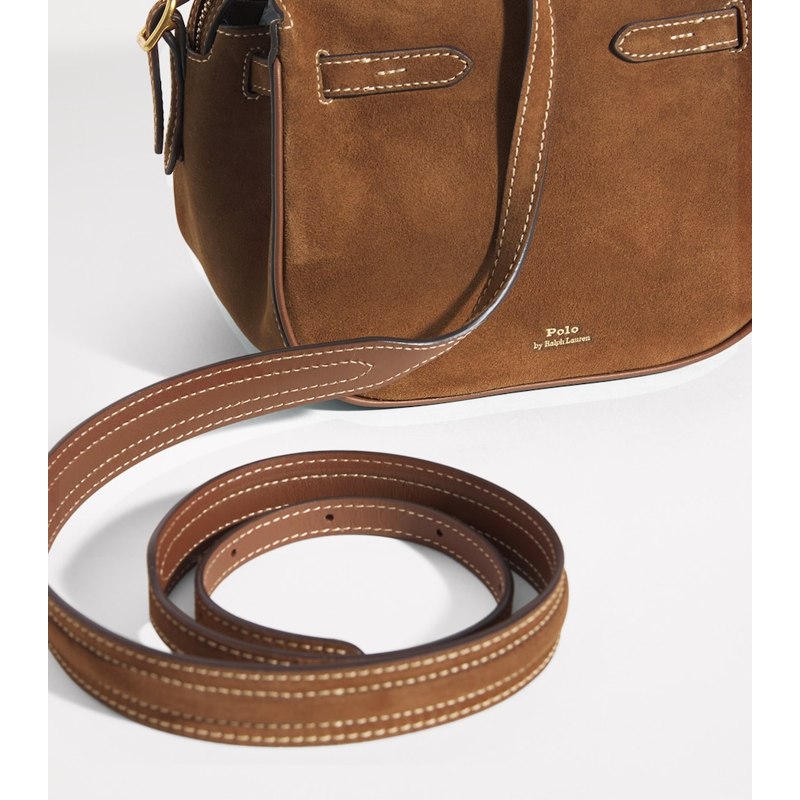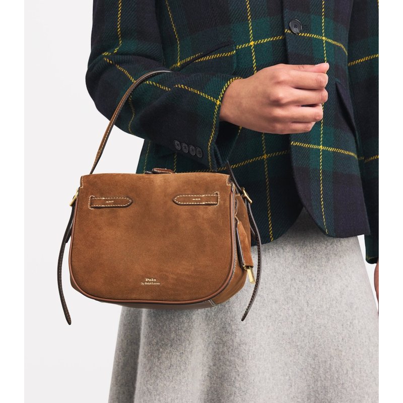 No vai-e-vem urbano, A Bolsa Crossbody Mini Suede Polo ID da Polo Ralph Lauren resolve tudo com elegância e praticidade.