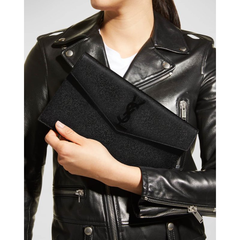No styling, A Bolsa Wallet Uptown YSL in Grained vai do denim à seda sem esforço — um curinga YSL - Yves Saint Laurent para hoje e sempre.