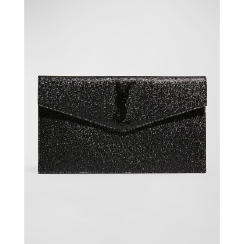 Assinada por YSL - Yves Saint Laurent, A Bolsa Wallet Uptown YSL in Grained é uma wallet em couro de bezerro, com couro granulado. Apresenta monograma YSL em metal. Conta com fecho magnético. Medidas aprox.: 16 x 27 x 2 cm e Origem: Itália
