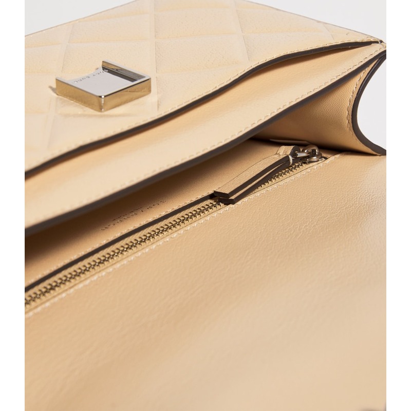 Confeccionada em materiais de alto padrão, a peça ressalta assinatura Double T. Cai sob o ombro com fluidez e abraça bem casacos e malhas.