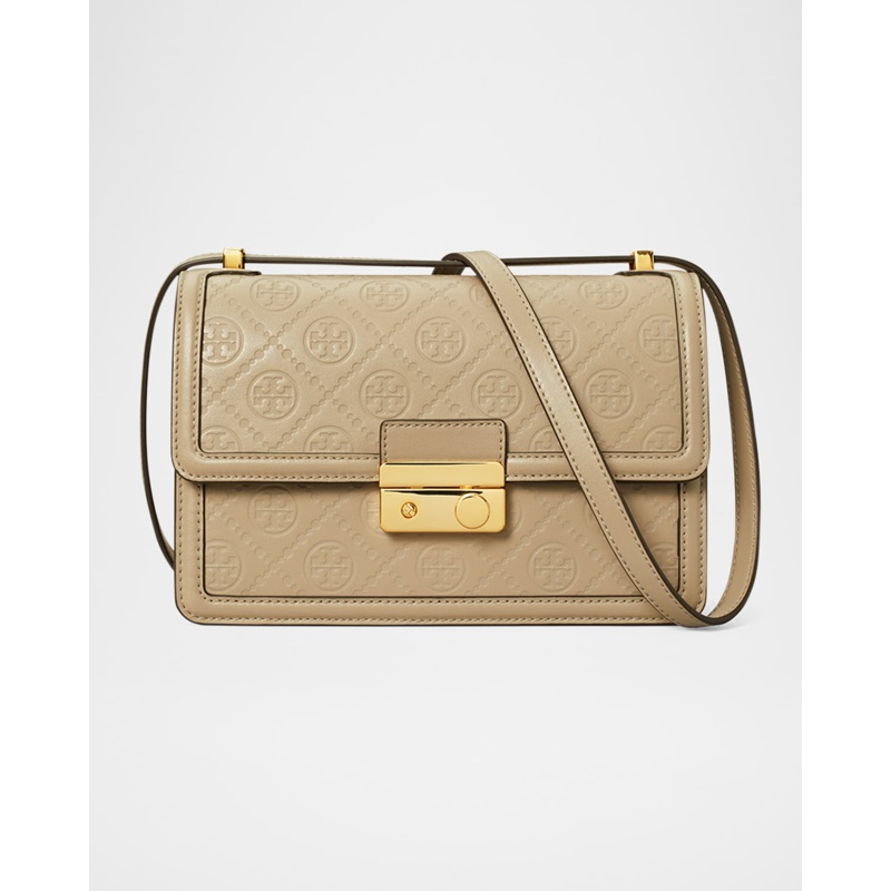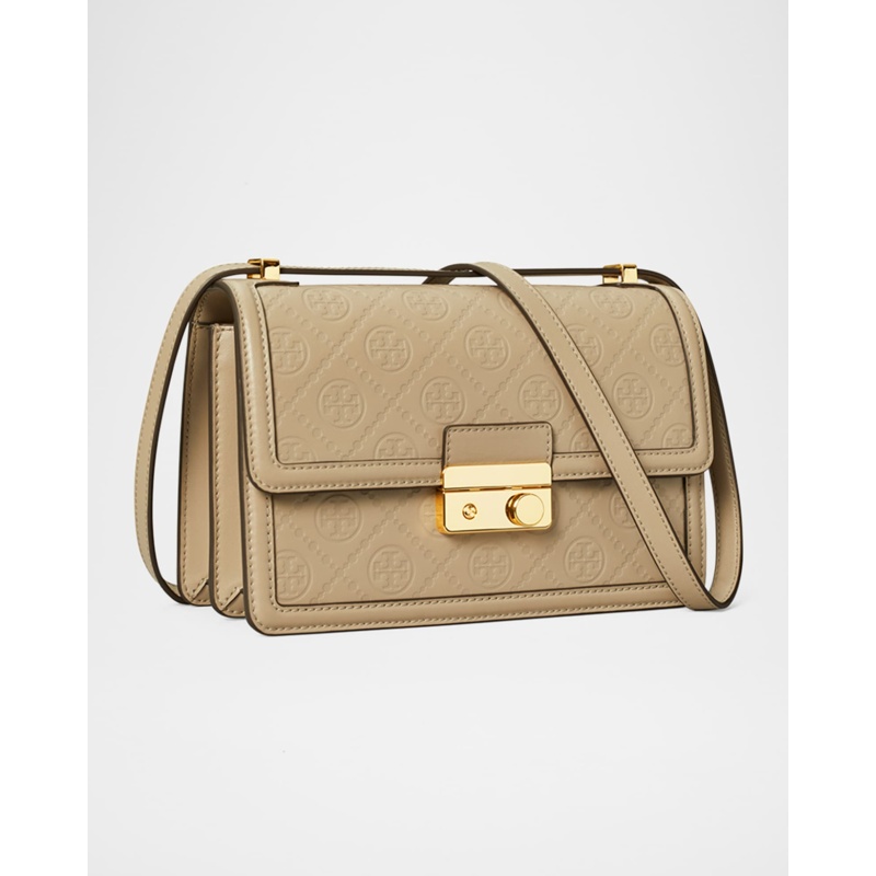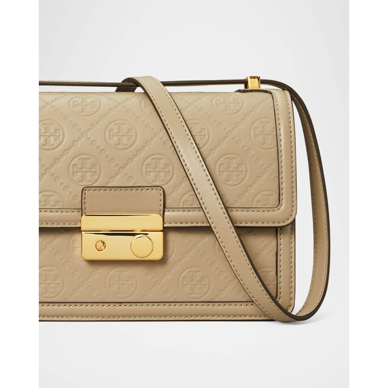 A Tory Burch Bolsa Shoulder T Monogram Flap interpreta o estilo Shoulder em design de ombro, com silhueta que abraça o corpo e otimiza mobilidade. Com alça de ombro, detalhes icônicos em monograma.