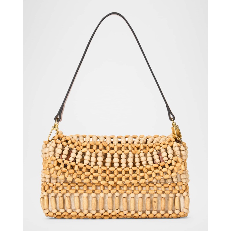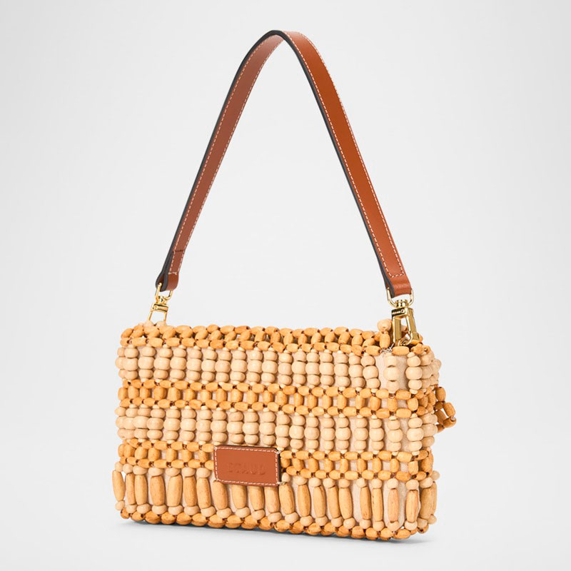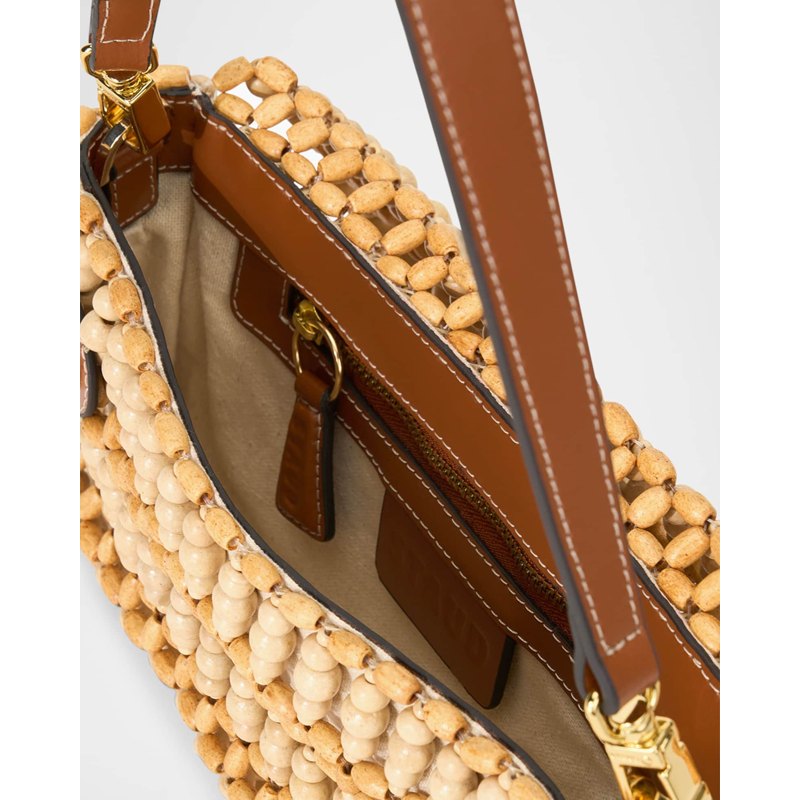 A Staud Bolsa Beach Timmy Convertible Beaded Wood interpreta o estilo Beach em design de praia, com texturas naturais e leveza. Com alça de ombro.