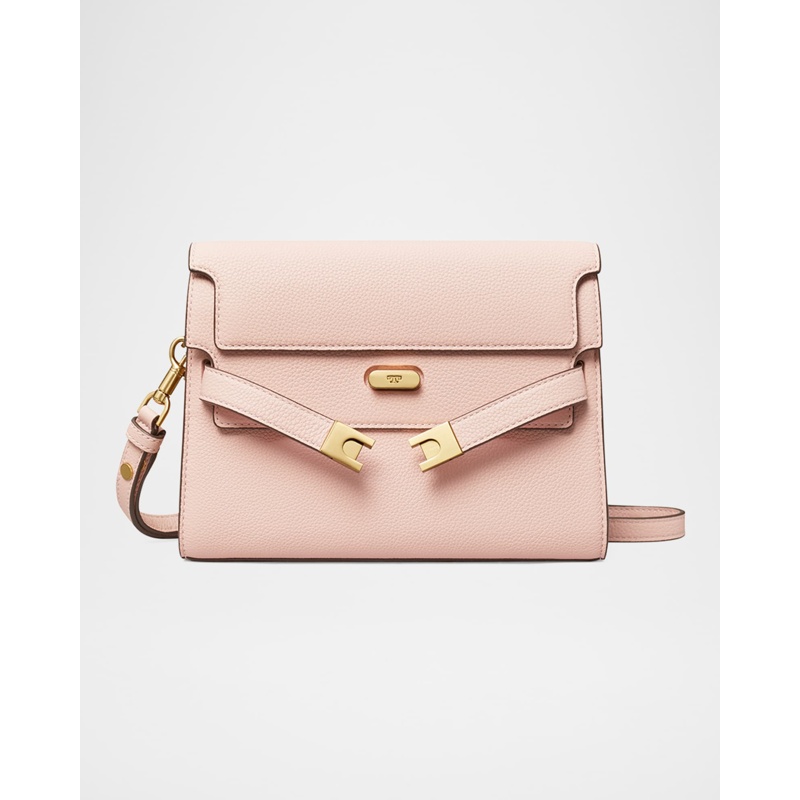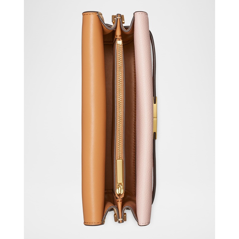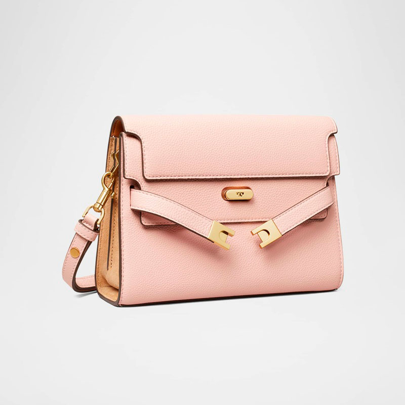 A Tory Burch Bolsa Shoulder Lee Radziwill Pebbled interpreta o estilo Shoulder em design de ombro, com silhueta que abraça o corpo e otimiza mobilidade. Materiais como couro granulado, com alça de ombro.