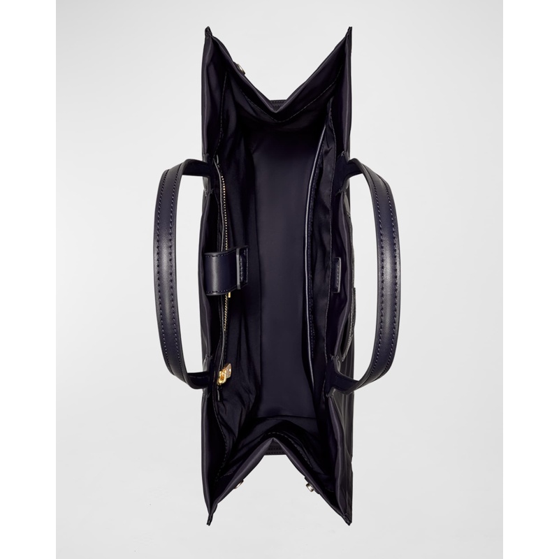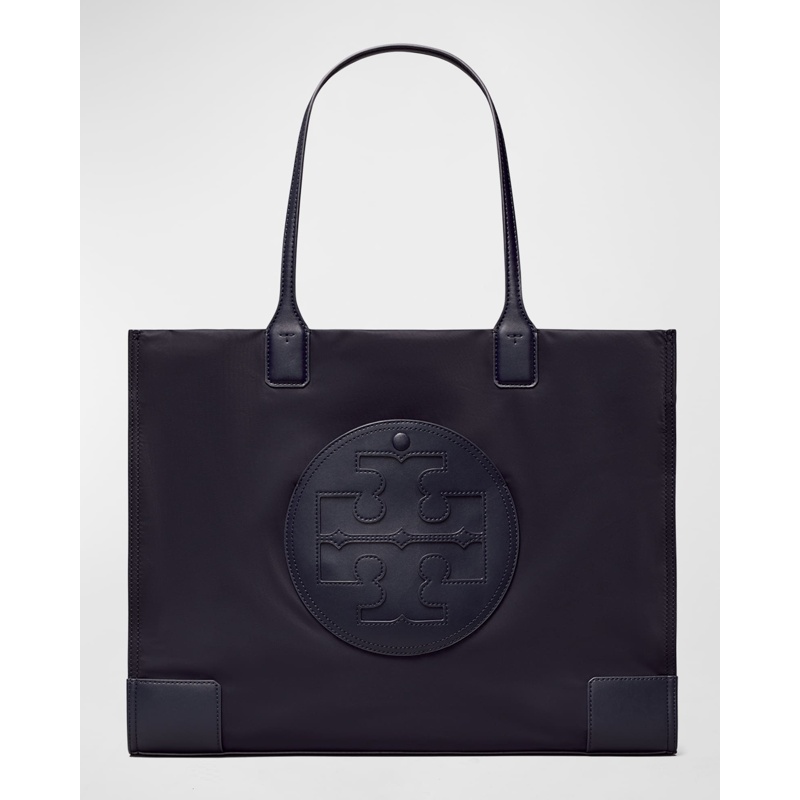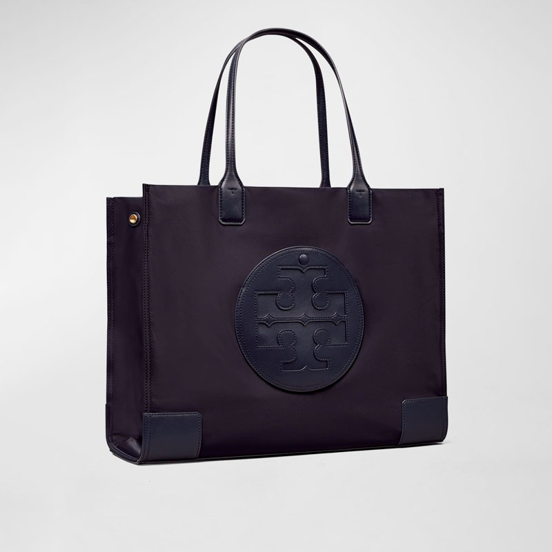 A Tory Burch Bolsa Shopper Ella Logo Recycled Nylon interpreta o estilo Shopper em design de ombro, com volume generoso e linhas limpas. Materiais como nylon, com alça de ombro.