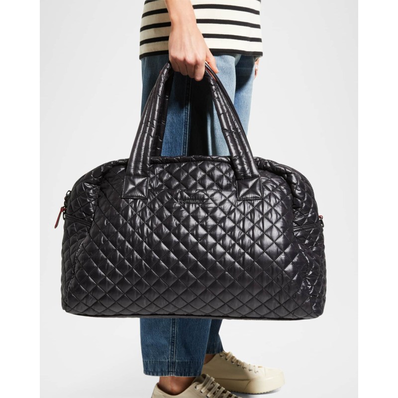 A MZ Wallace Bolsa Viagem Jim Travel Quilted Nylon interpreta o estilo Viagem em design de mão/tiracolo, com robustez e compartimentação inteligente. Materiais como nylon, com alças de mão e tiracolo, detalhes icônicos em matelassê.