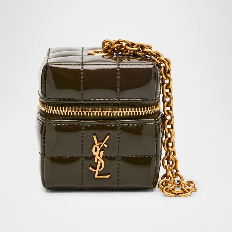 YSL - Yves Saint Laurent eleva o cotidiano com esta wallet de apelo contemporâneo. A Bolsa Wallet Mini YSL Cube Box Wristlet in Patent Fabric combina linhas precisas e proporções equilibradas para um efeito de luxo discreto.