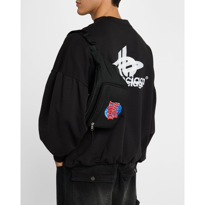 A Balenciaga Bolsa Necessaire Explorer Planet Earth Belt interpreta o estilo Necessaire em design de mão, com organização de pequenos itens. Com sem alça.