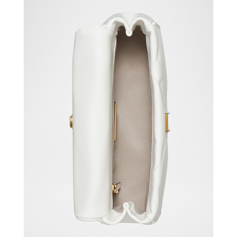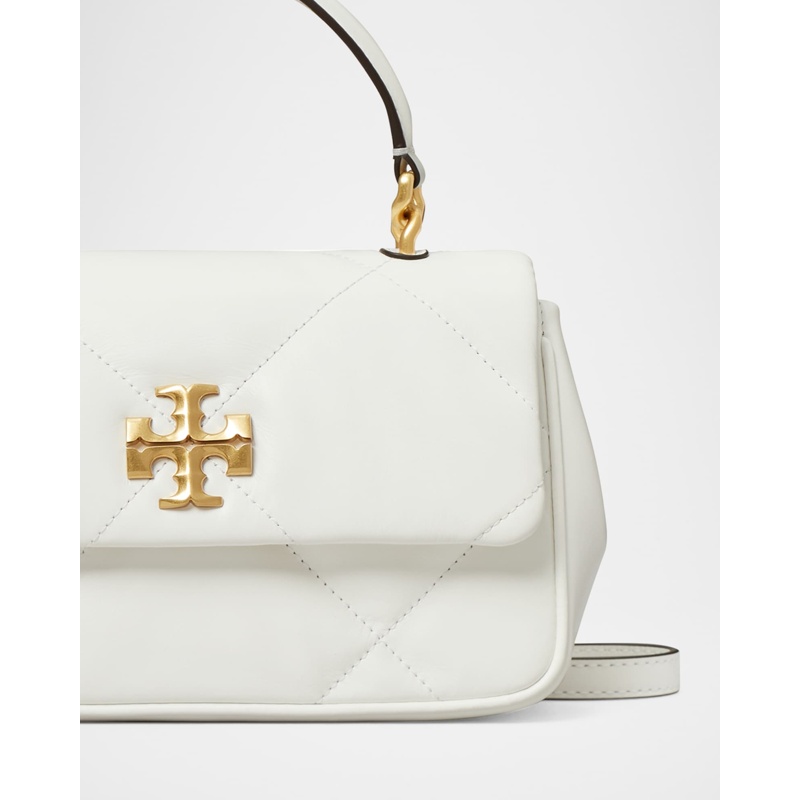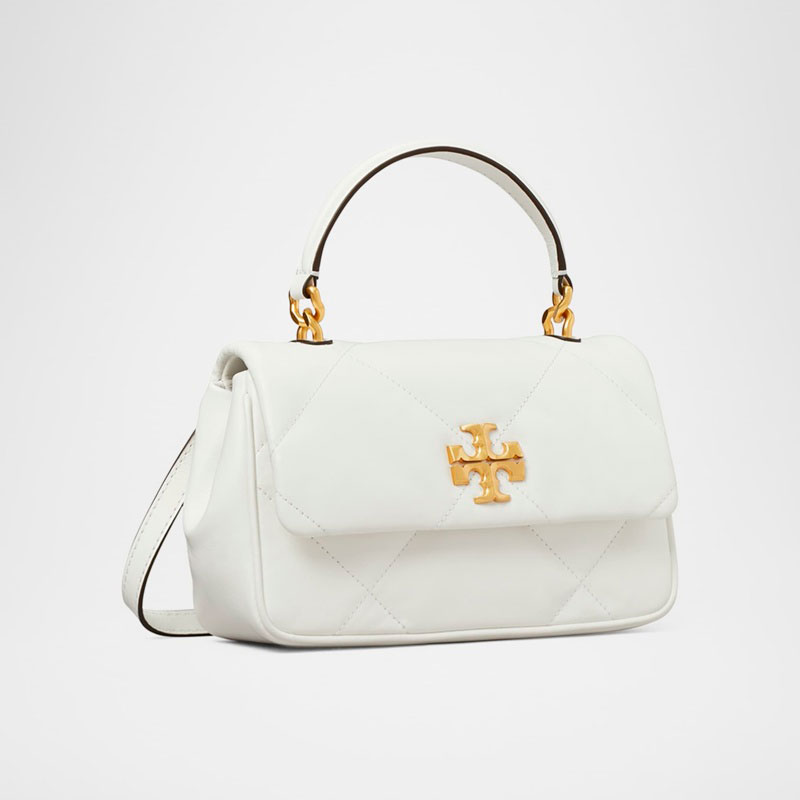 A Tory Burch Bolsa Handle Petite Flap Quilted interpreta o estilo Handle em design de mão, com arquitetura definida com presença feminina e estrutura impecável. Com alça de mão, detalhes icônicos em matelassê.