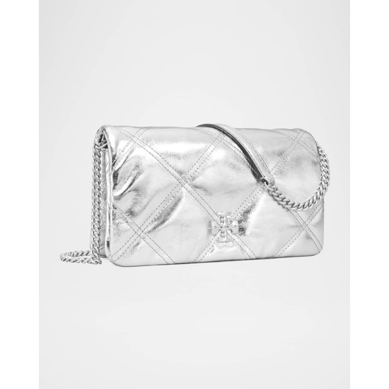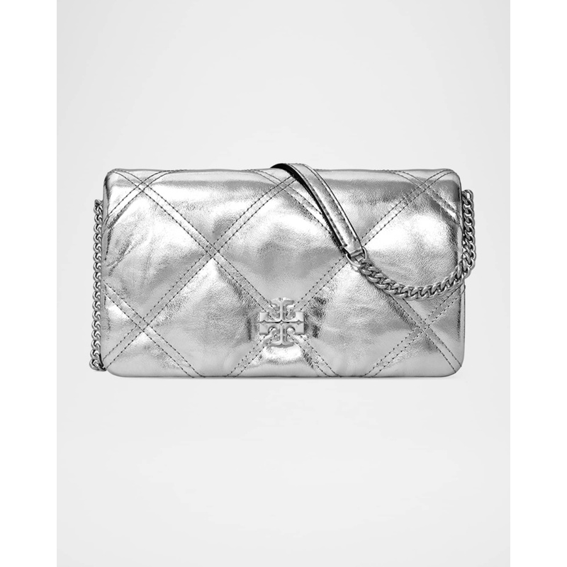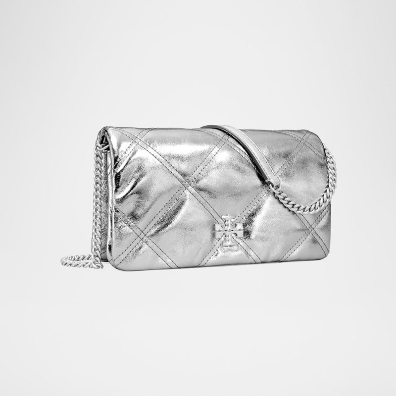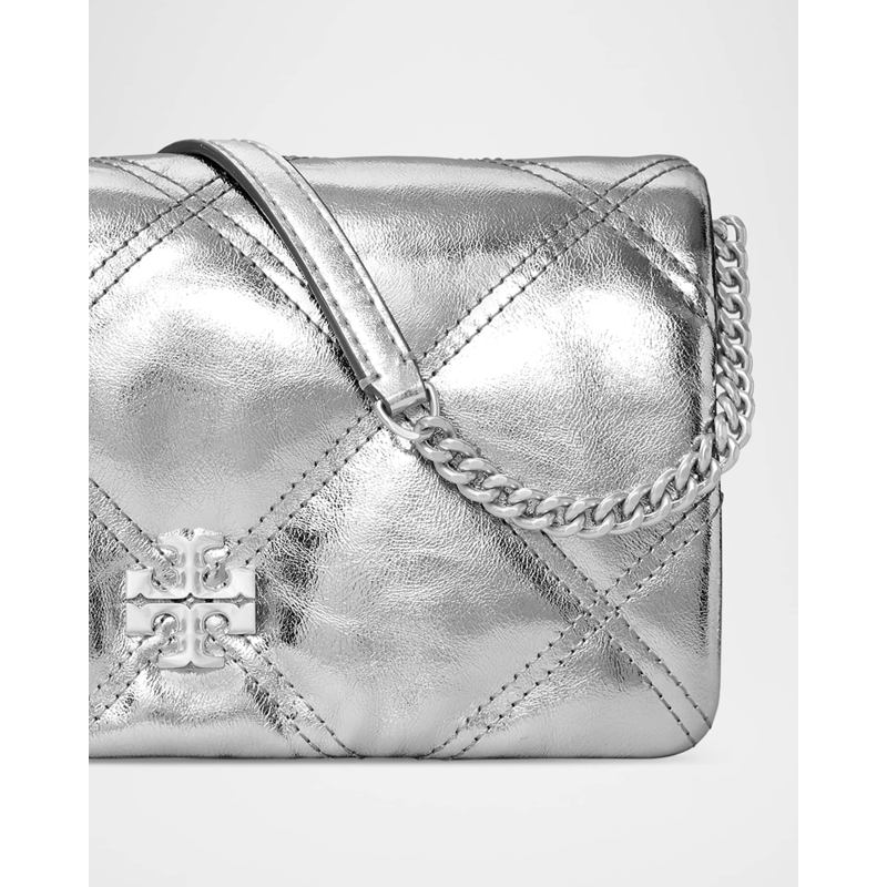 A Tory Burch Bolsa Crossbody Kira Quilted Metallic on Chain interpreta o estilo Crossbody em design de tiracolo, com corpo leve de vocação urbana. Com alça de corrente, alça tiracolo ajustável, detalhes icônicos em matelassê.