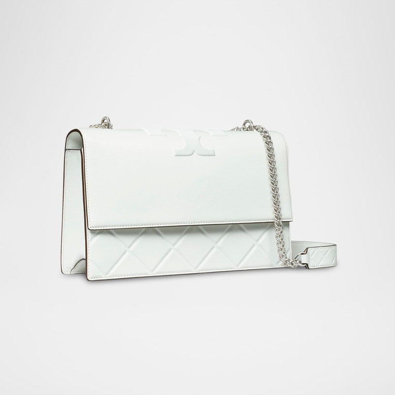 A Tory Burch Bolsa Crossbody Fleming Convertible Quilted interpreta o estilo Crossbody em design de tiracolo, com corpo leve de vocação urbana. Com alça tiracolo ajustável, detalhes icônicos em matelassê.