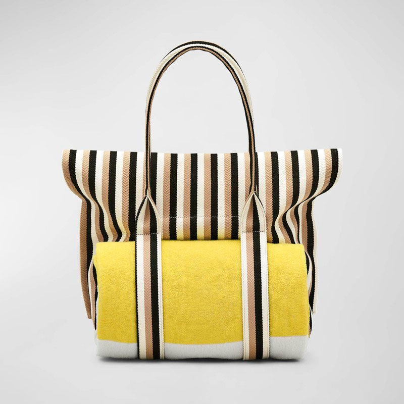 A Marc Jacobs Bolsa Beach The Striped Jacquard Beach interpreta o estilo Beach em design de praia, com texturas naturais e leveza. Materiais como jacquard, com alça de ombro.