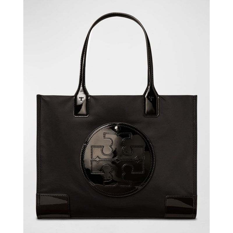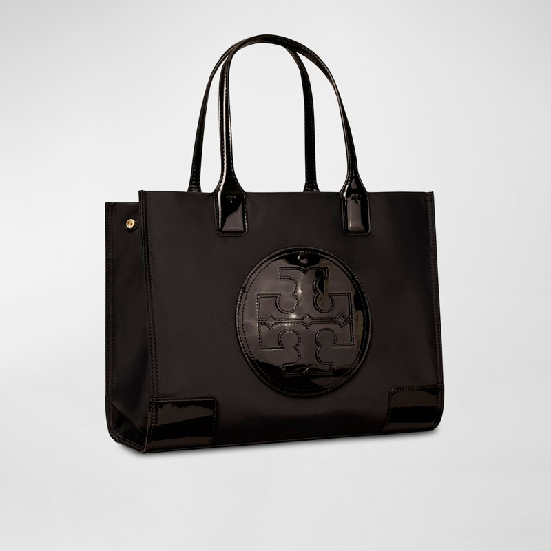 A Tory Burch Bolsa Shopper Ella Mini Patent Recycled Nylon interpreta o estilo Shopper em design de ombro, com volume generoso e linhas limpas. Materiais como verniz, nylon, com alça de ombro.