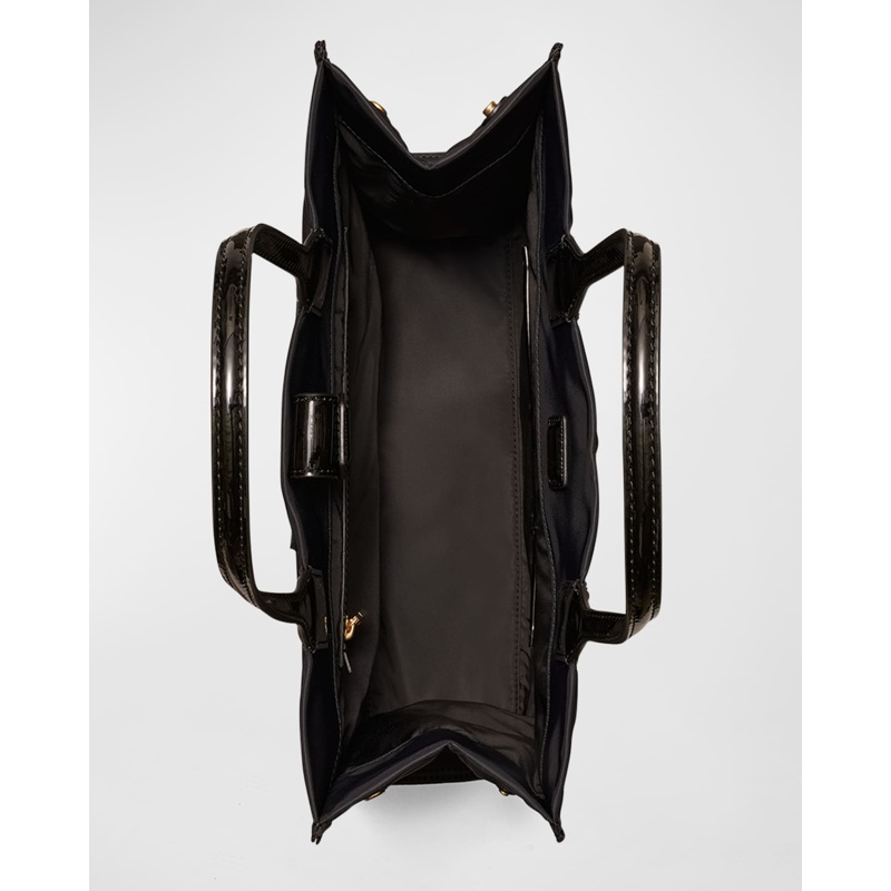 A Tory Burch Bolsa Shopper Ella Mini Patent Recycled Nylon interpreta o estilo Shopper em design de ombro, com volume generoso e linhas limpas. Materiais como verniz, nylon, com alça de ombro.Pensada...