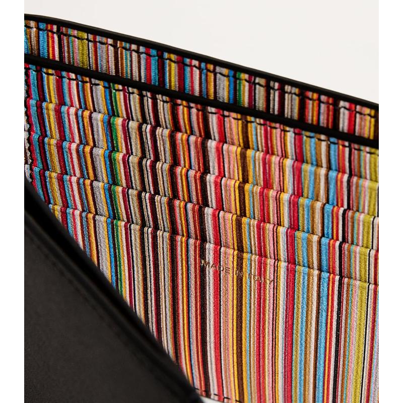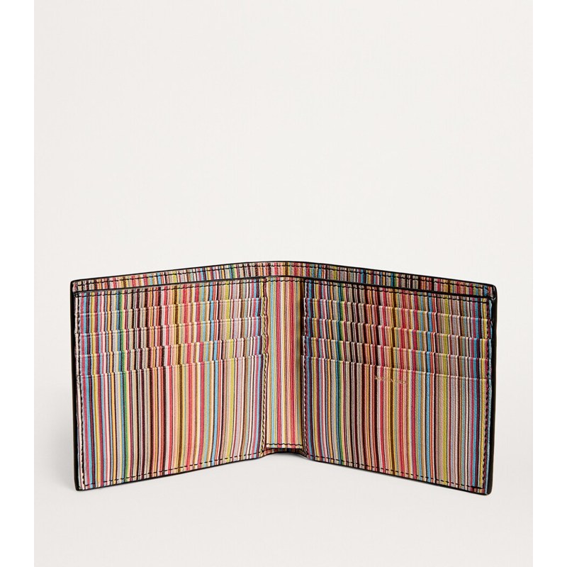 Bolsa Wallet Signature Stripe Bifold é a definição de pouco espaço, máximo impacto — cortesia da Paul Smith.