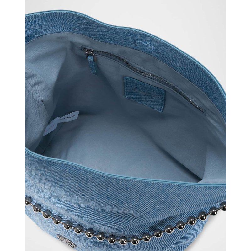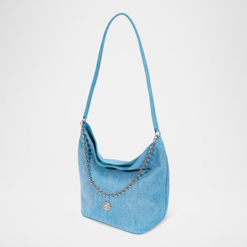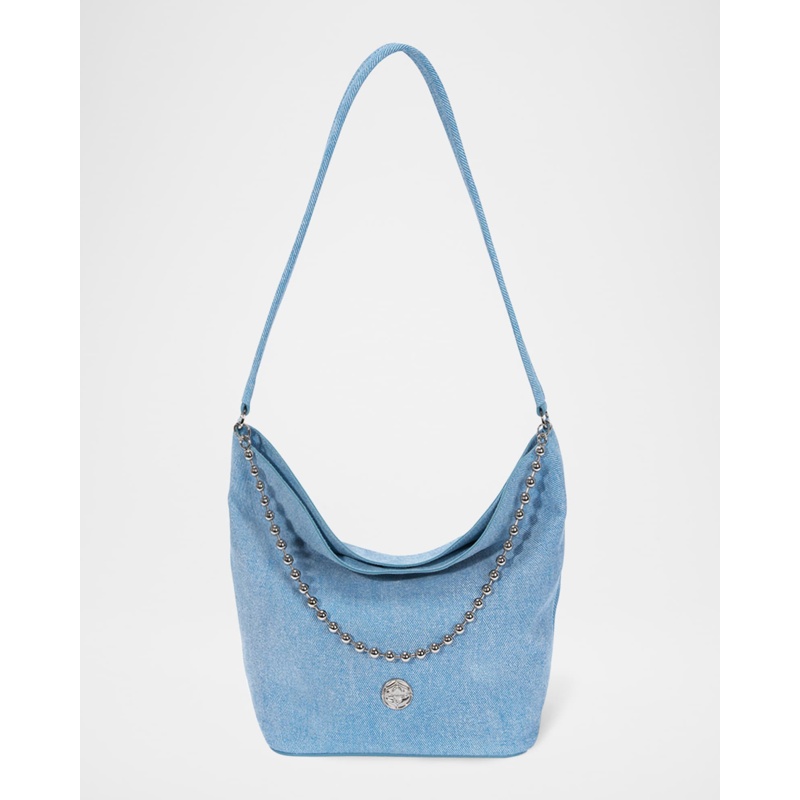 A Oryany Bolsa Bucket Ball Chain Denim-Print interpreta o estilo Bucket em design de mão/ombro, com copo cilíndrico com fecho ajustável. Com alça de corrente.