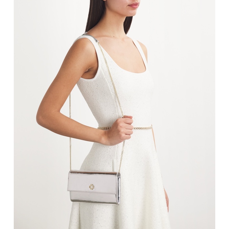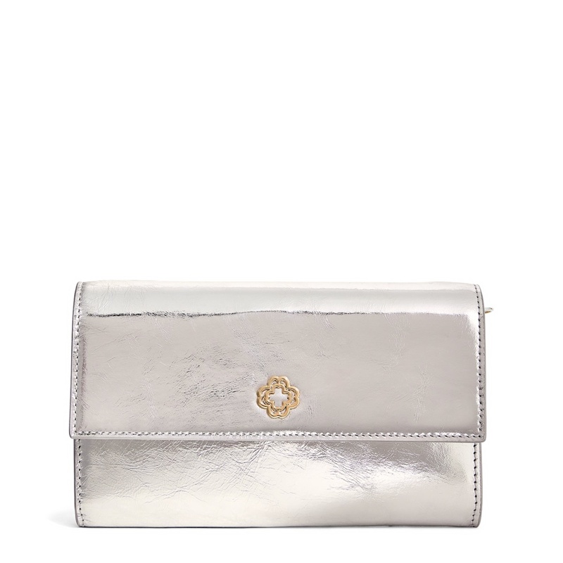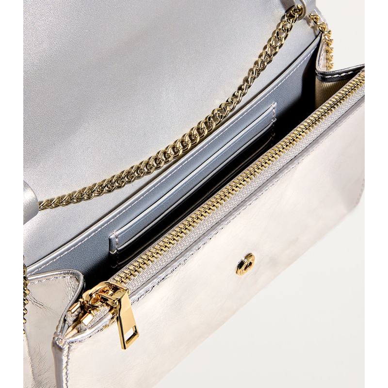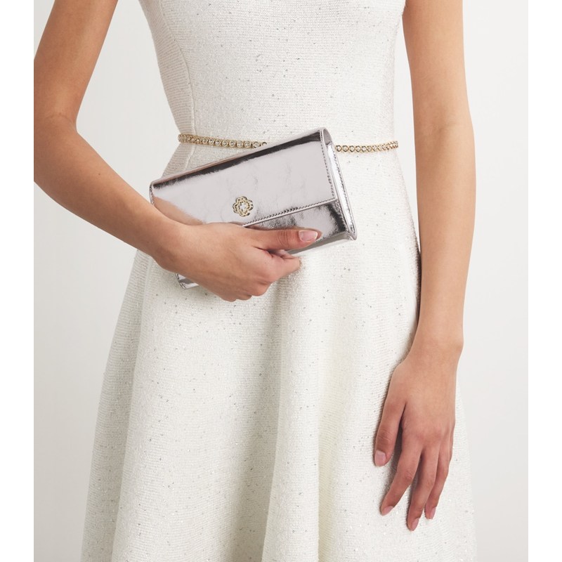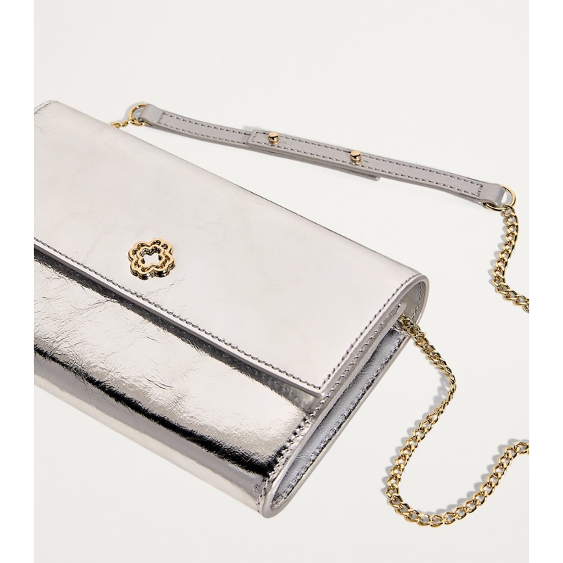 Maje eleva o cotidiano com esta clutch de apelo contemporâneo. A Bolsa Clutch Metallic Clover combina linhas precisas e proporções equilibradas para um efeito de luxo discreto.