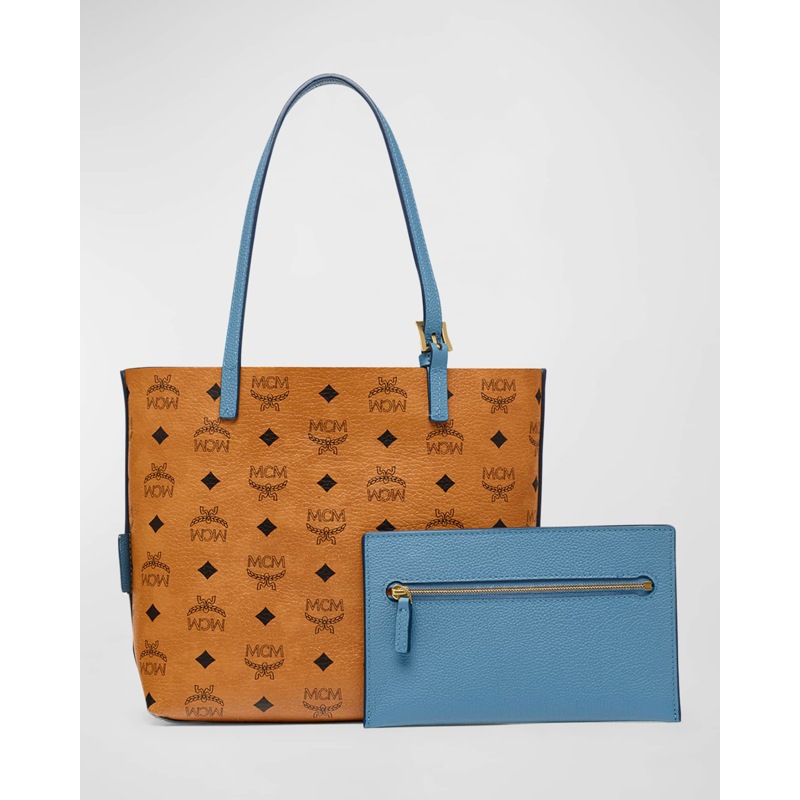 A MCM Bolsa Shopper Himmel Reversible Visetos Monogram interpreta o estilo Shopper em design de ombro, com volume generoso e linhas limpas. Com alça de ombro, detalhes icônicos em monograma.