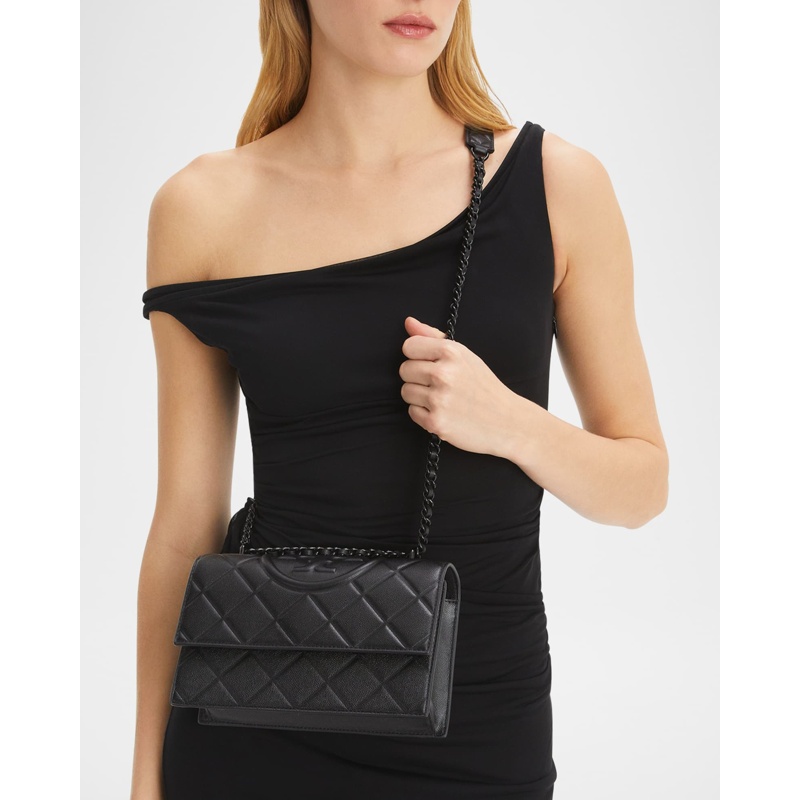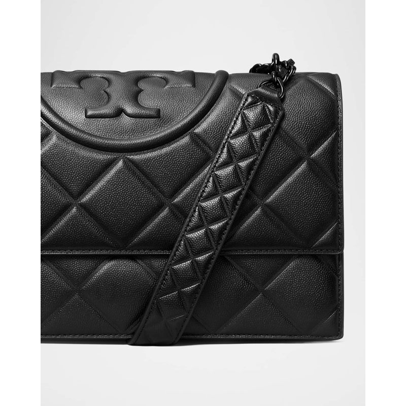 A Tory Burch Bolsa Shoulder Fleming Small Quilted Convertible interpreta o estilo Shoulder em design de ombro, com silhueta que abraça o corpo e otimiza mobilidade. Com alça de ombro, detalhes icônicos em matelassê.