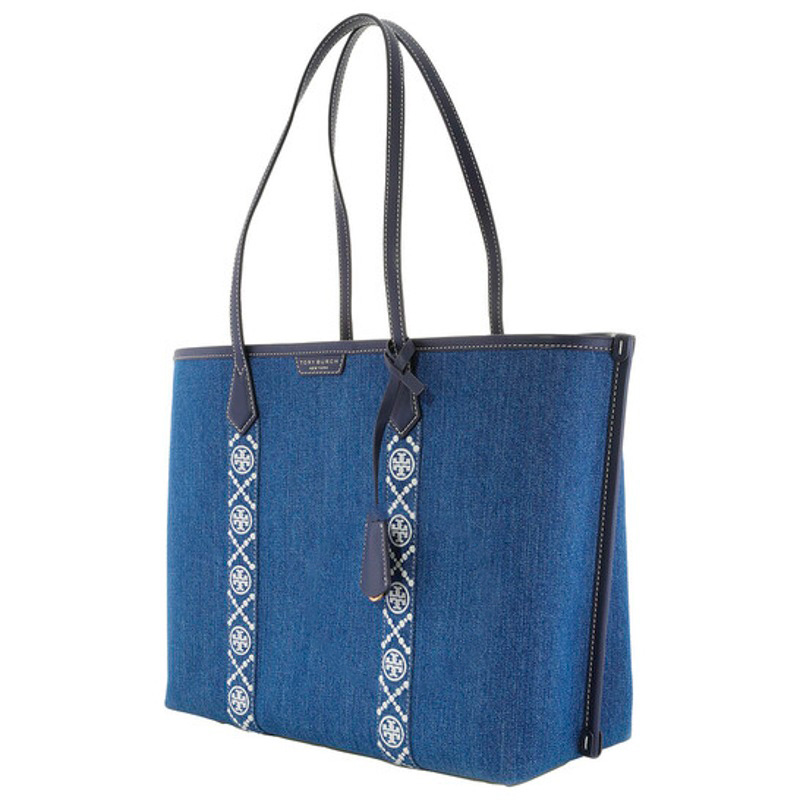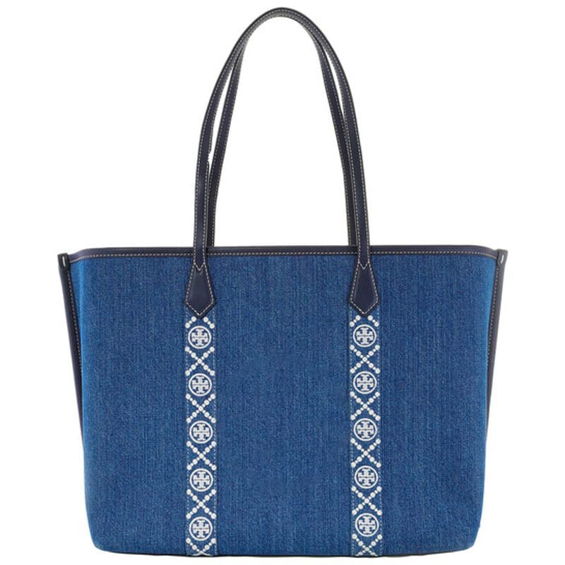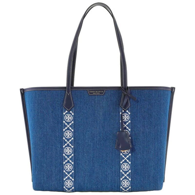 A Tory Burch Bolsa Shopper Triple Compartment Denim Perry interpreta o estilo Shopper em design de ombro, com volume generoso e linhas limpas. Com alça de ombro.