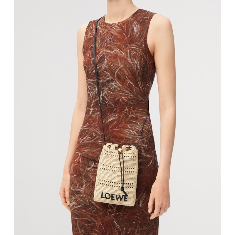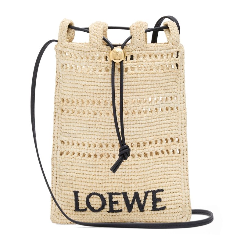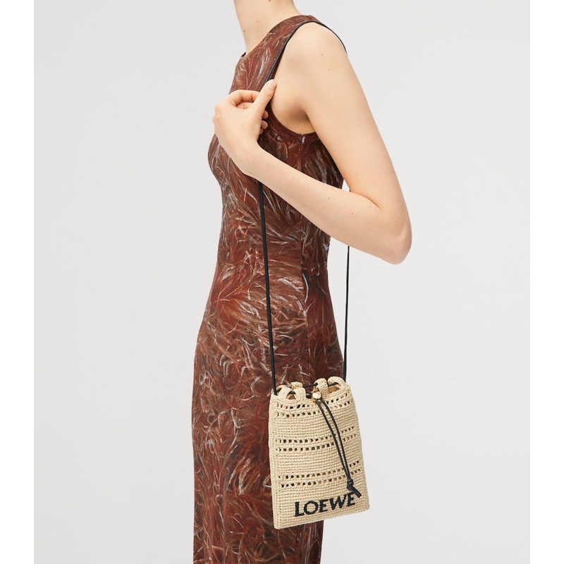 Loewe eleva o cotidiano com esta beach de apelo contemporâneo. A Bolsa Beach Collab x Paula's Ibiza Raffia Drawstring Pocket combina linhas precisas e proporções equilibradas para um efeito de luxo discreto.